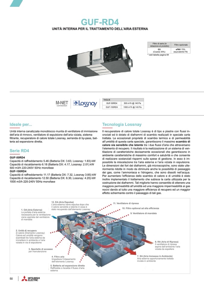 filtrante, recuperatore di calore totale Lossnay, serranda di by-pass, bat-