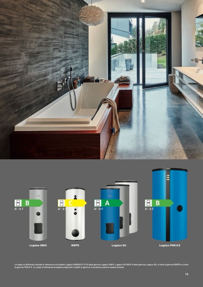 Le classi di efficienza indicate si riferiscono ai prodotti Logalux SM500/5 E S-B della gamma Logalux SM/5, Logalux SU160/5 A della gamma Logalux SU, a tutta la gamma BWPS e a tutta