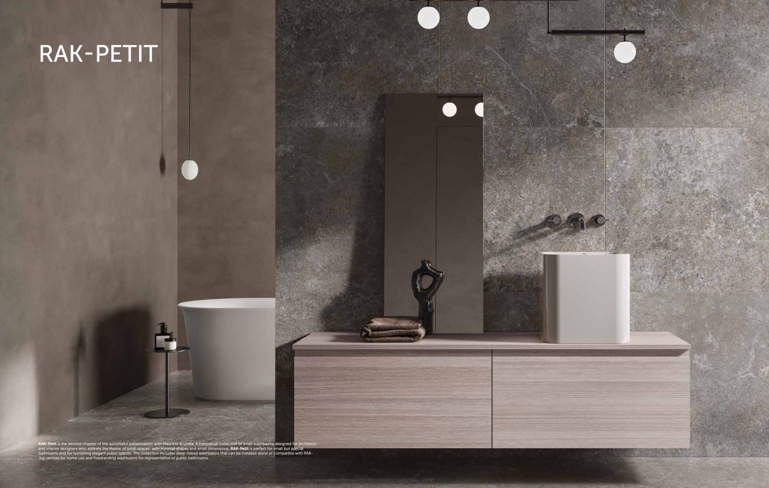 RAK-Petit is the second chapter of the successful collaboration with Maurizio Scutellà. A transversal collection of small washbasins designed for architects