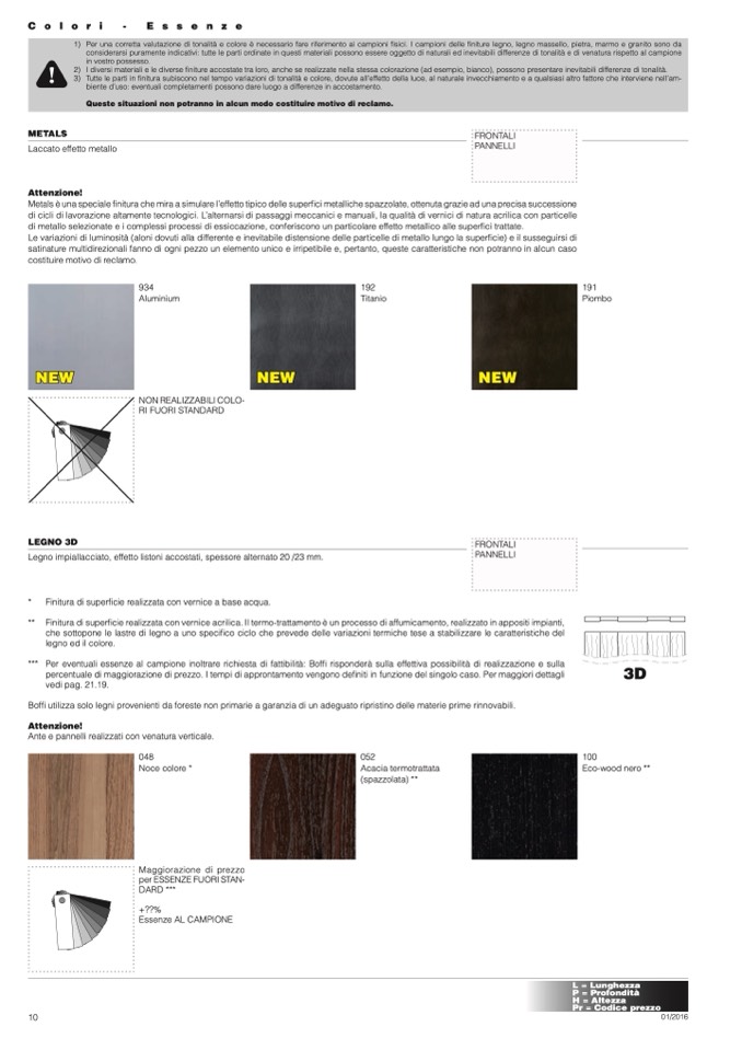 *** Per eventuali essenze al campione inoltrare richiesta di fattibilità: Boffi risponderà sulla effettiva possibilità di realizzazione e sulla