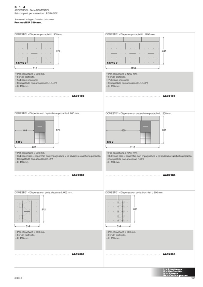 DOMESTICI - Dispensa con coperchio e portaolio L 900 mm.