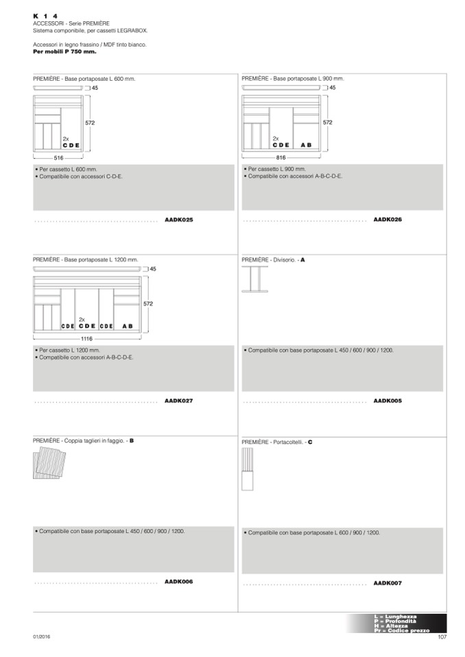 • Compatibile con base portaposate L 450 / 600 / 900 / 1200.