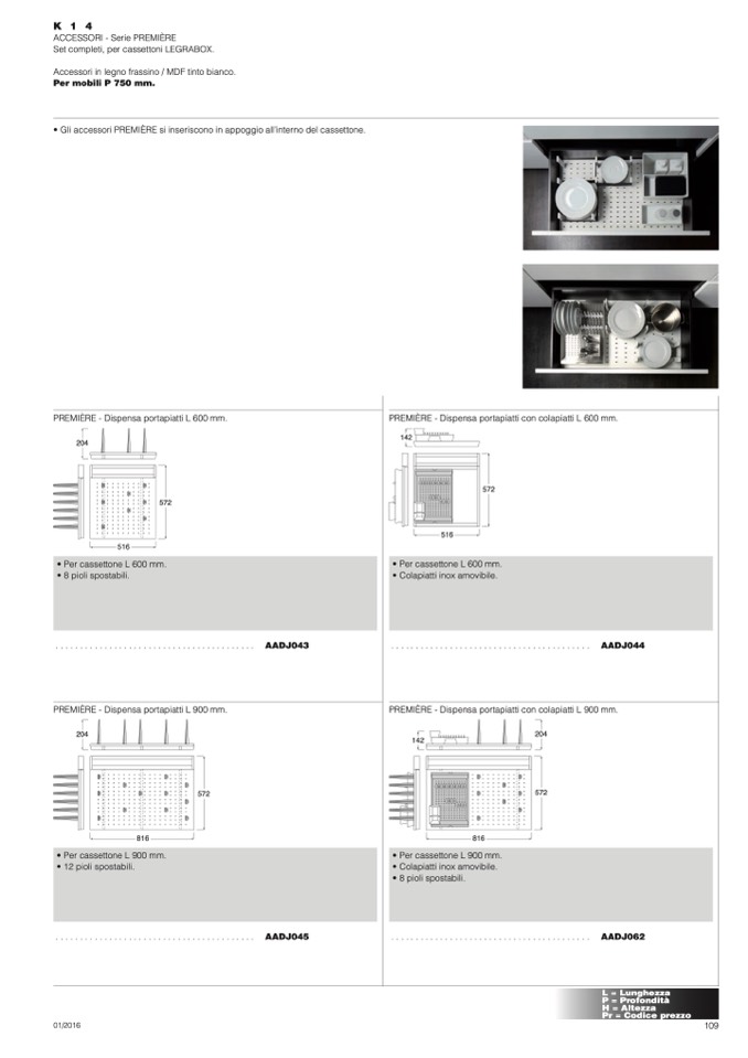 PREMIÈRE - Dispensa portapiatti L 600 mm.