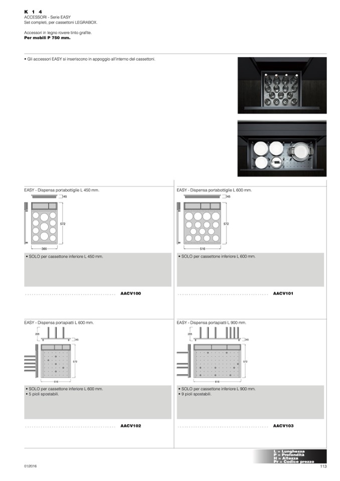 • Gli accessori EASY si inseriscono in appoggio all’interno del cassettoni.