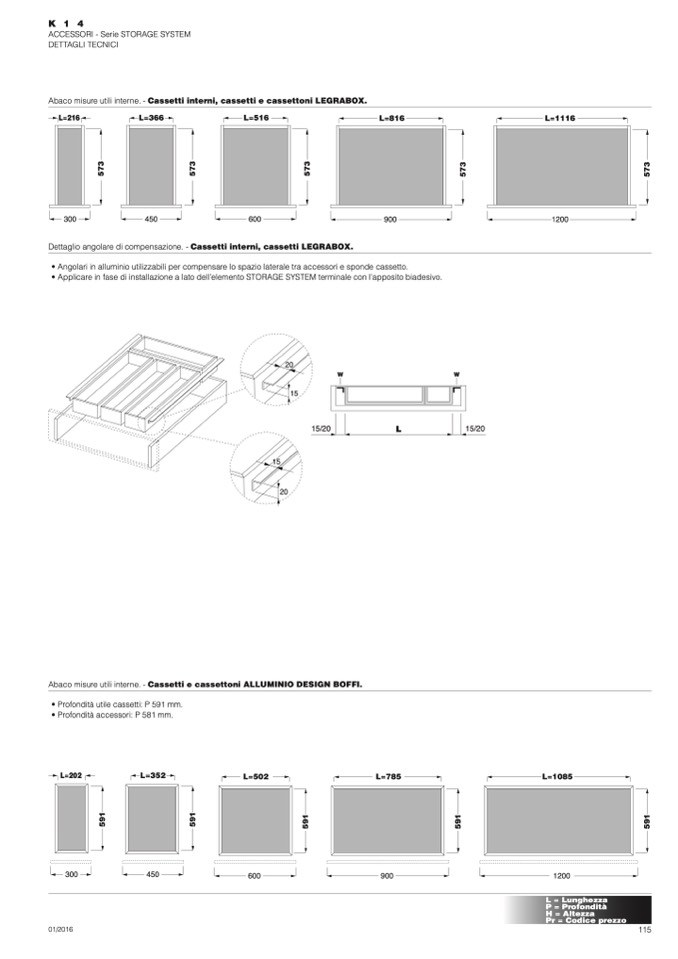 Abaco misure utili interne. - Cassetti interni, cassetti e cassettoni LEGRABOX.