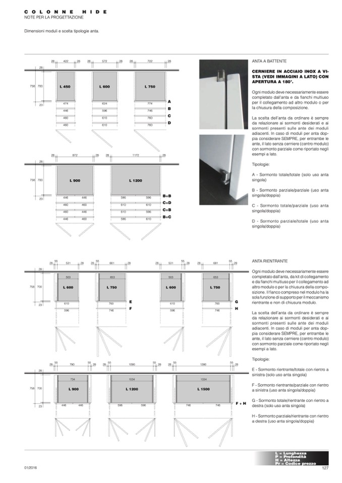 Dimensioni moduli e scelta tipologie anta.