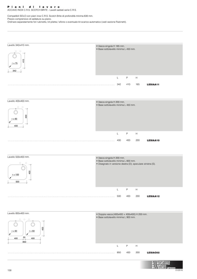 Compatibili SOLO con piani inox C.R.S. Scotch Brite di profondità minima 630 mm.