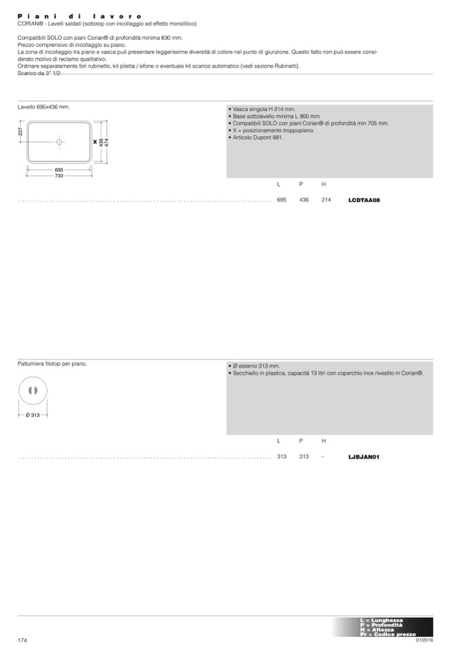 • Compatibili SOLO con piani Corian® di profondità min 705 mm.