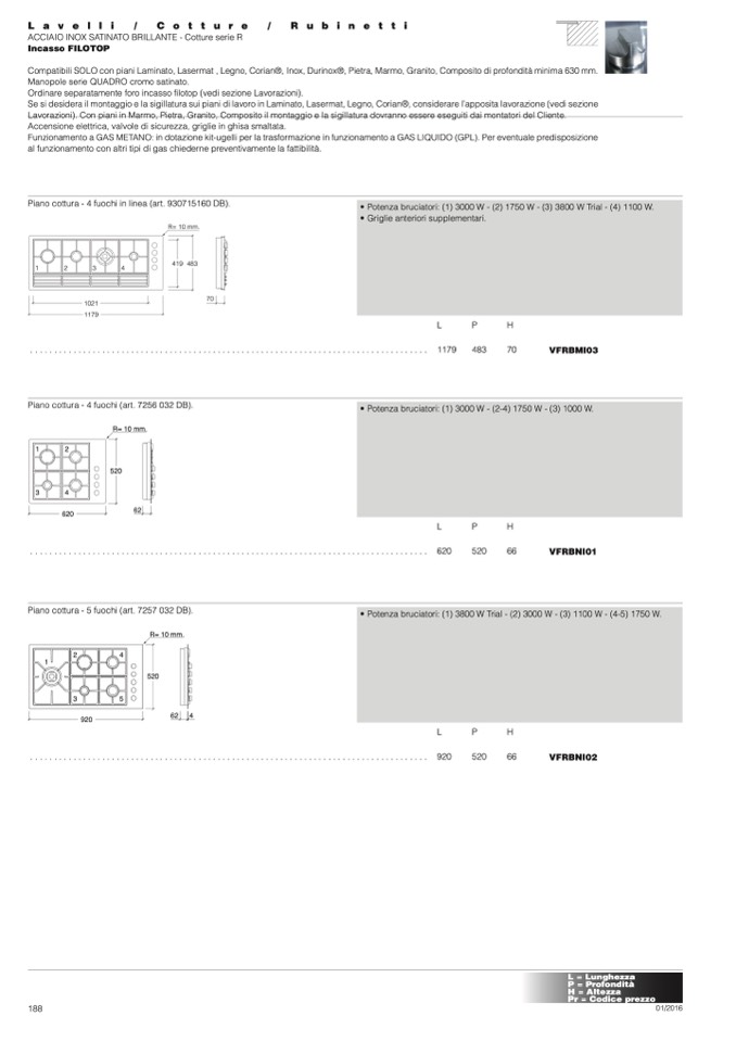 Piano cottura - 4 fuochi in linea (art. 930715160 DB).