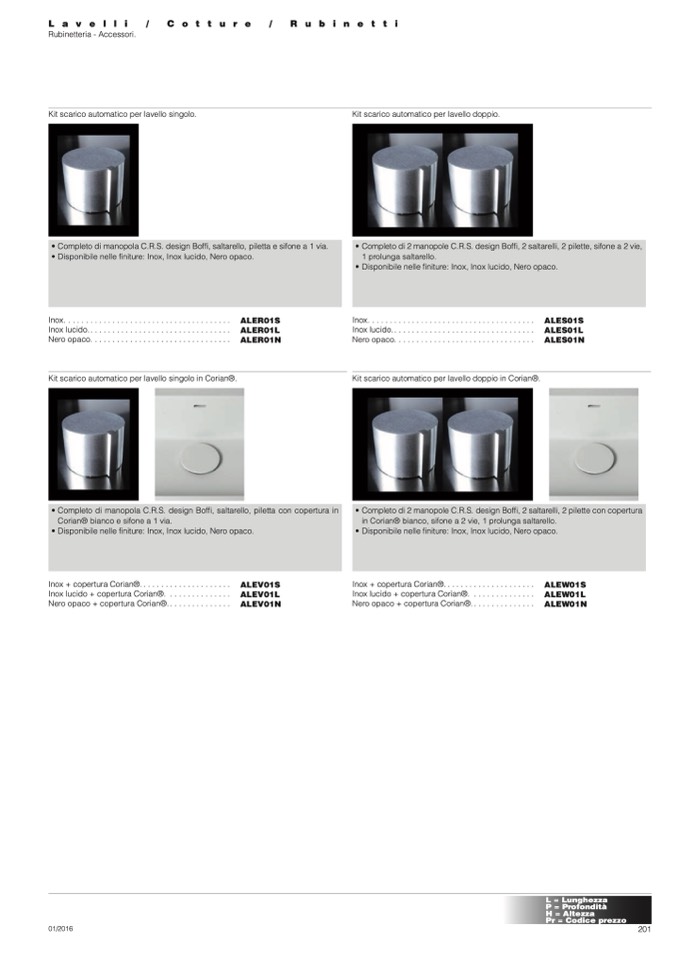 • Completo di 2 manopole C.R.S. design Boffi, 2 saltarelli, 2 pilette con copertura