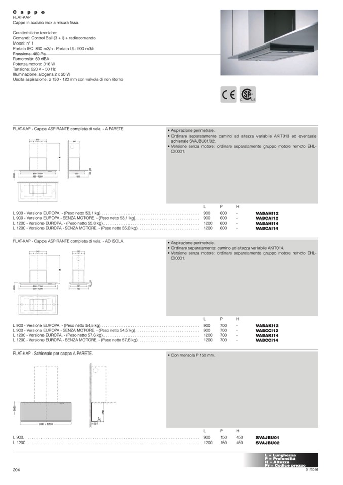 FLAT-KAP - Cappa ASPIRANTE completa di vela. - A PARETE.