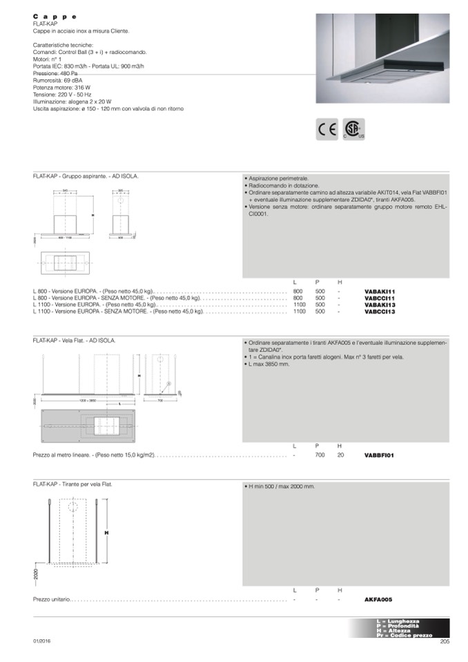 • Ordinare separatamente camino ad altezza variabile AKIT014, vela Flat VABBFI01
