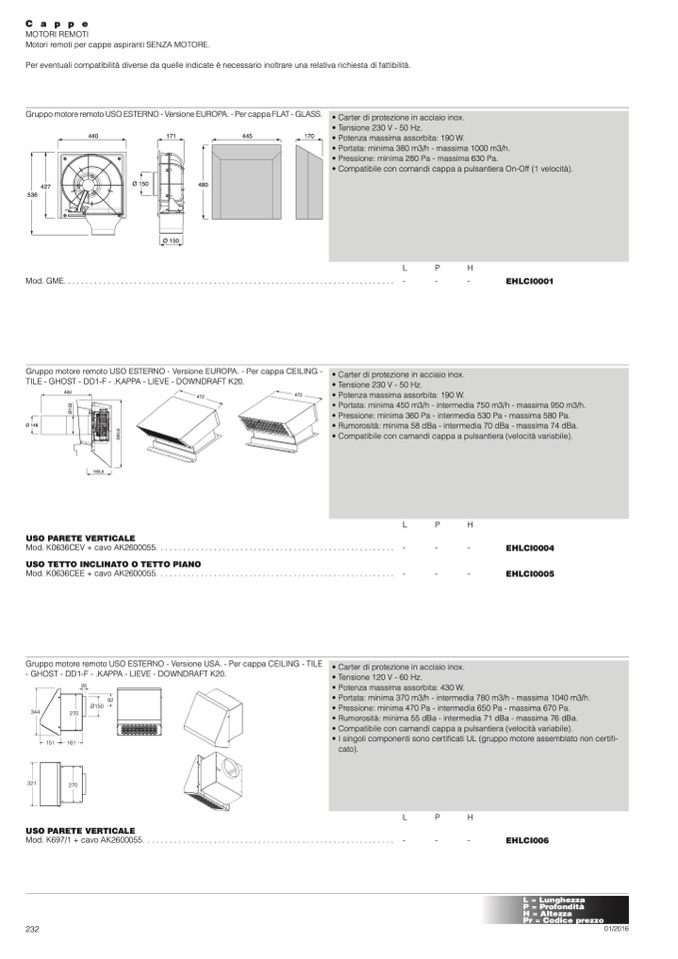 Gruppo motore remoto USO ESTERNO - Versione EUROPA. - Per cappa CEILING -
