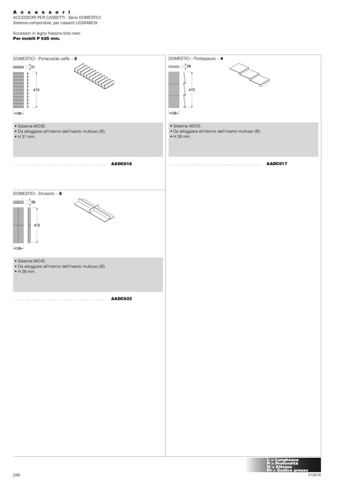 ACCESSORI PER CASSETTI - Serie DOMESTICI