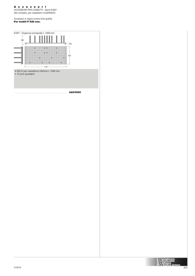 • SOLO per cassettone inferiore L 1200 mm.