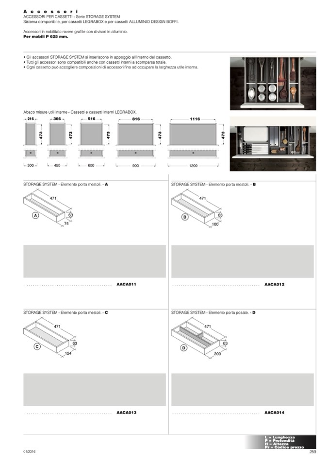 • Gli accessori STORAGE SYSTEM si inseriscono in appoggio all’interno del cassetto.
