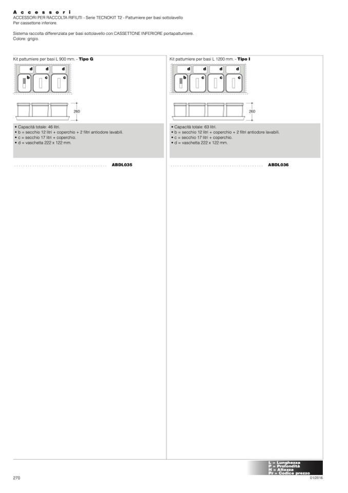 ACCESSORI PER RACCOLTA RIFIUTI - Serie TECNOKIT T2 - Pattumiere per basi sottolavello