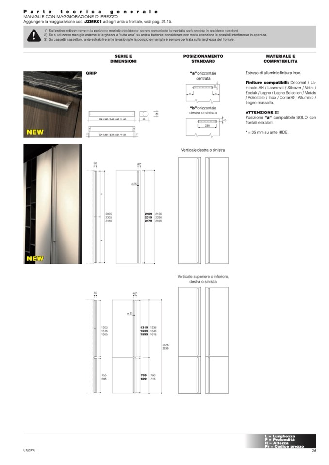 MANIGLIE CON MAGGIORAZIONE DI PREZZO
