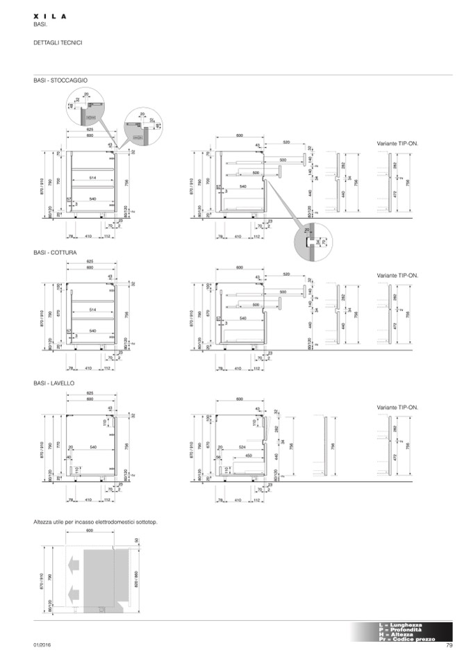 Altezza utile per incasso elettrodomestici sottotop.