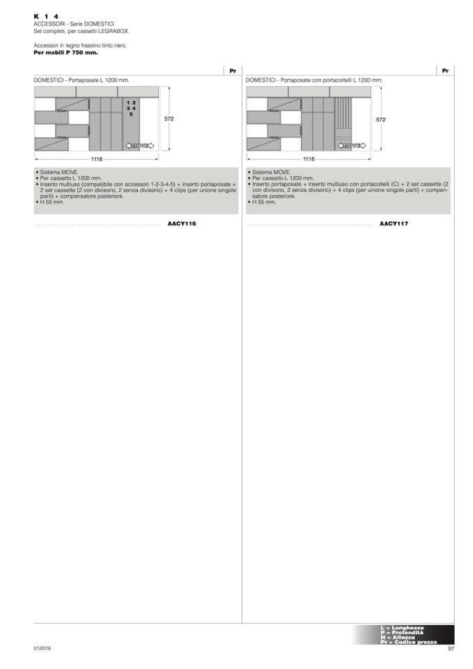 • Per cassetto L 1200 mm.