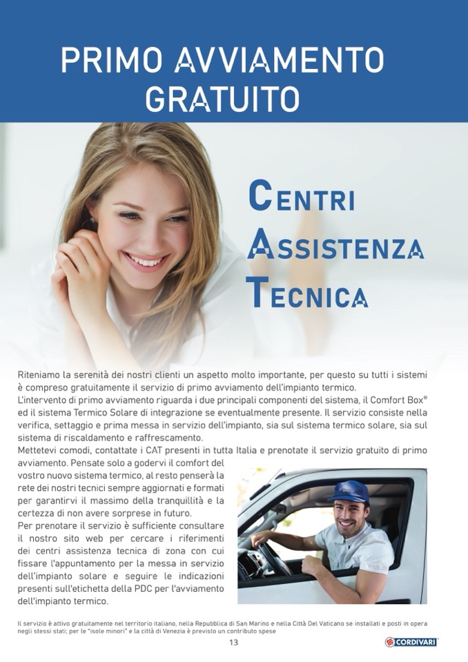 è compreso gratuitamente il servizio di primo avviamento dell’impianto termico.