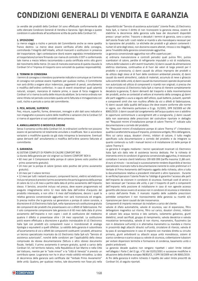 Le vendite dei prodotti della Cordivari Srl sono effettuate conformemente alle