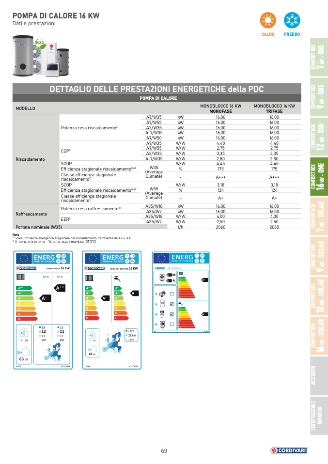 Scala Efficienza energetica stagionale del riscaldamento d’ambiente da A+++ a D
