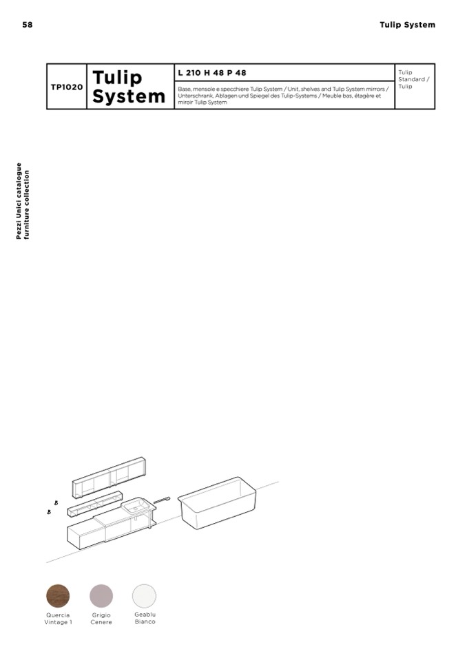 Base, mensole e specchiere Tulip System / Unit, shelves and Tulip System mirrors /