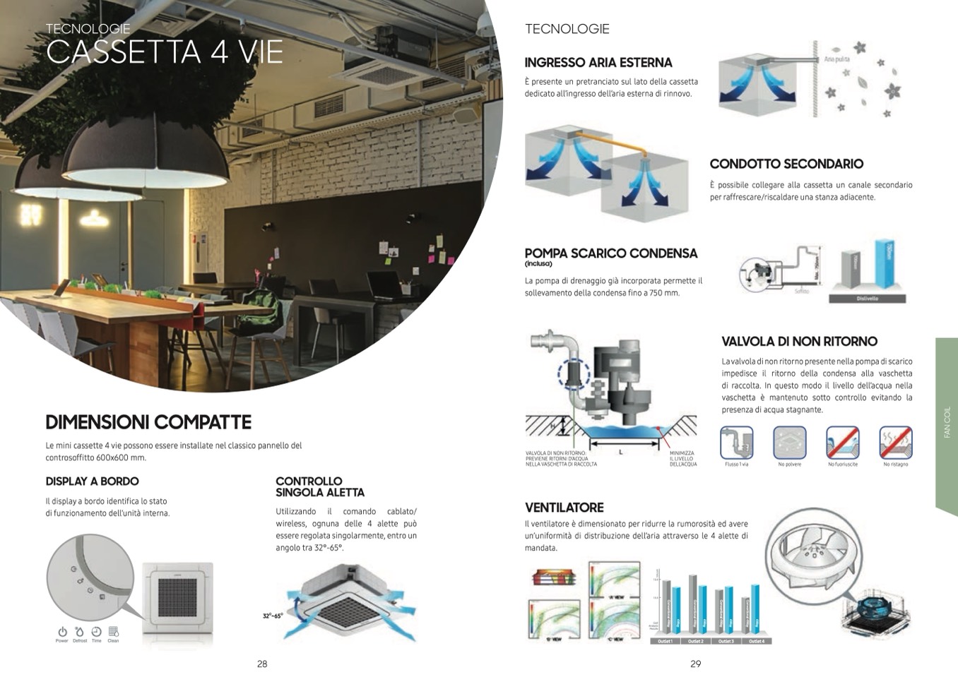 un’uniformità di distribuzione dell’aria attraverso le 4 alette di