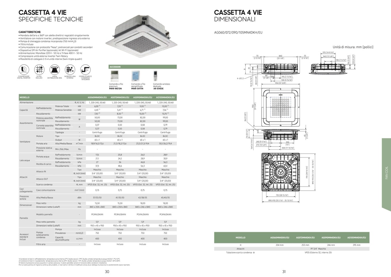 • Ventilatore con motore inverter; predisposizione ingresso aria esterna
