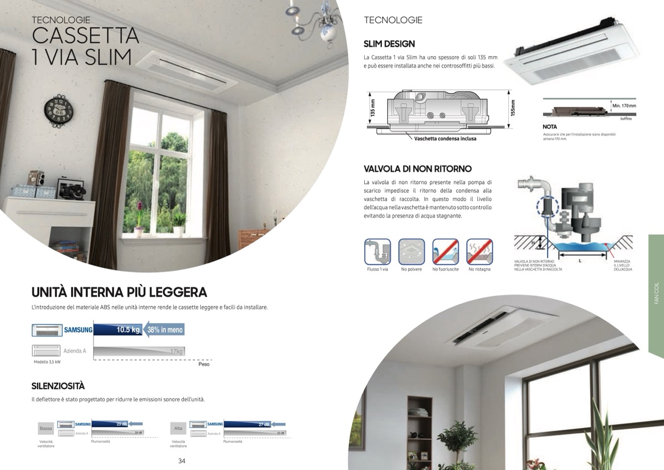 L’introduzione del materiale ABS nelle unità interne rende le cassette leggere e facili da installare.