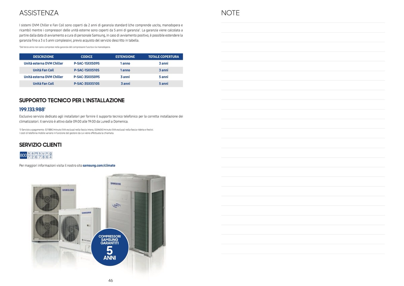 I sistemi DVM Chiller e Fan Coil sono coperti da 2 anni di garanzia standard (che comprende uscita, manodopera e