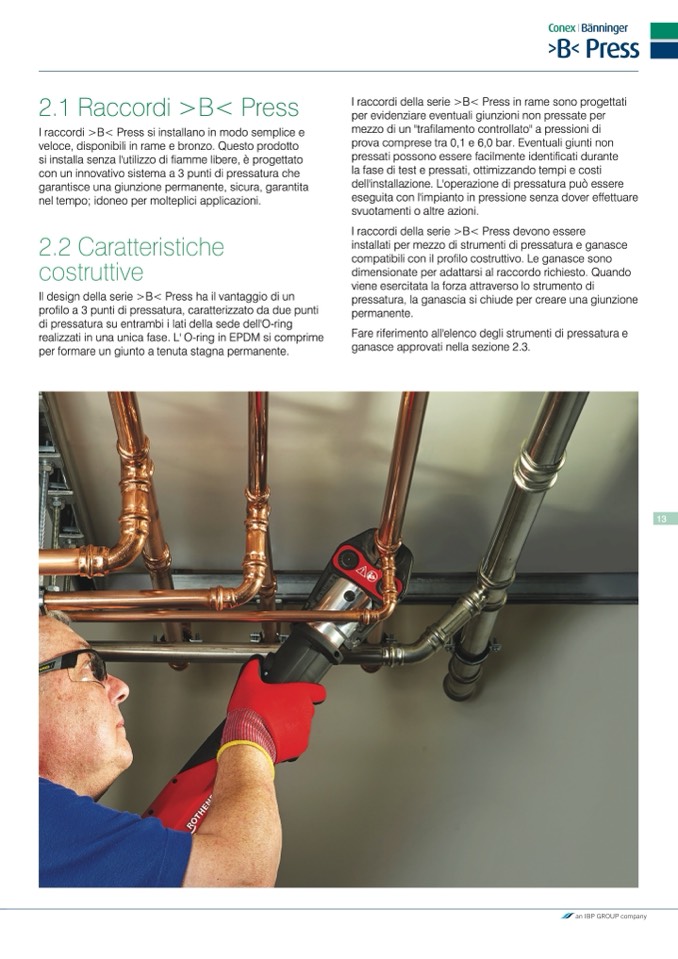 I raccordi della serie >B< Press in rame sono progettati
