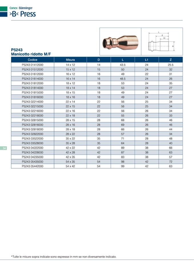 *Tutte le misure sopra indicate sono espresse in mm se non diversamente indicato.