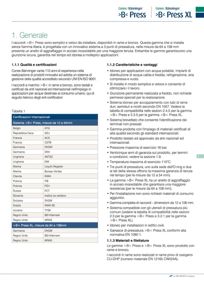 I raccordi >B< Press sono semplici e veloci da installare, disponibili in rame e bronzo. Questa gamma che si installa