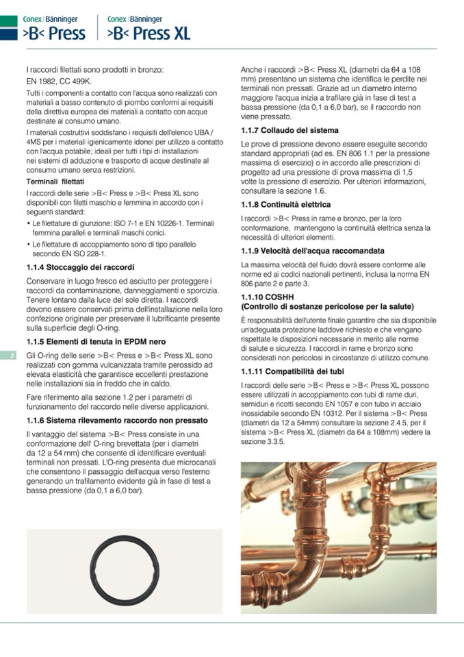 I raccordi >B< Press in rame e bronzo, per la loro