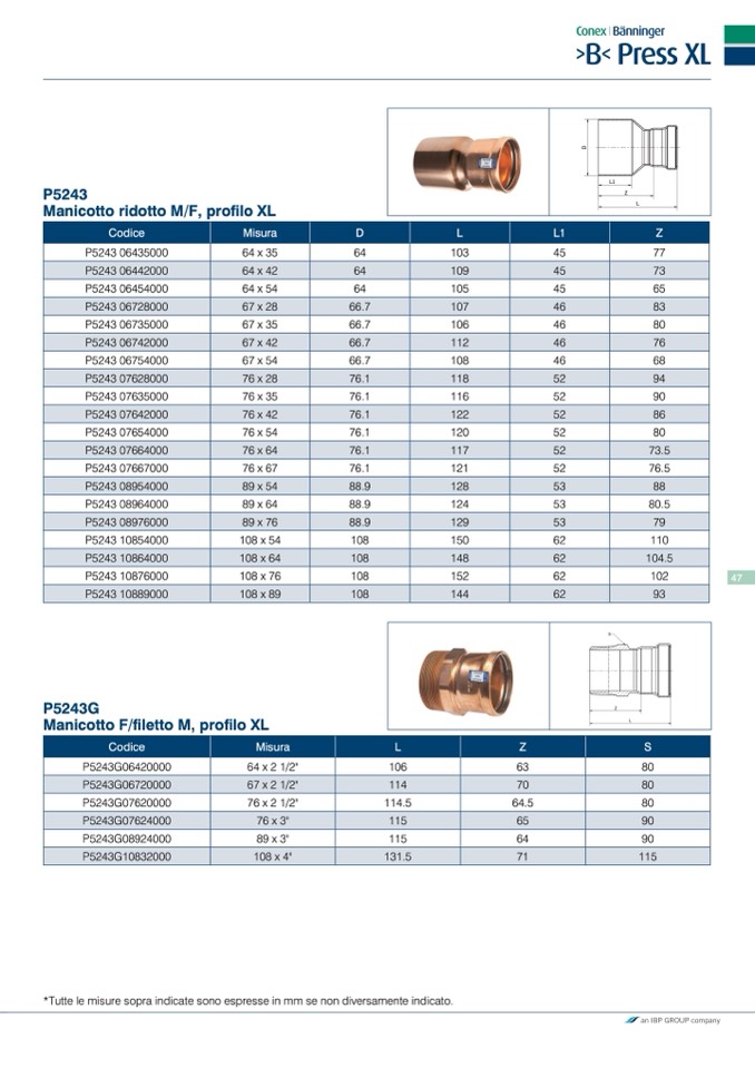 *Tutte le misure sopra indicate sono espresse in mm se non diversamente indicato.