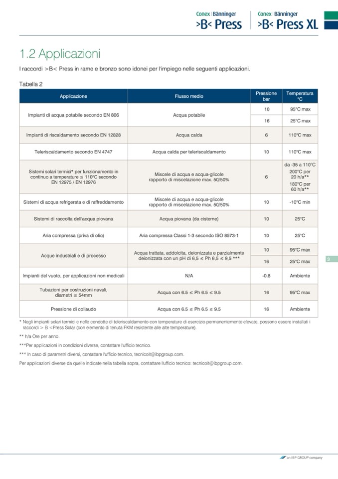 I raccordi >B< Press in rame e bronzo sono idonei per l'impiego nelle seguenti applicazioni.