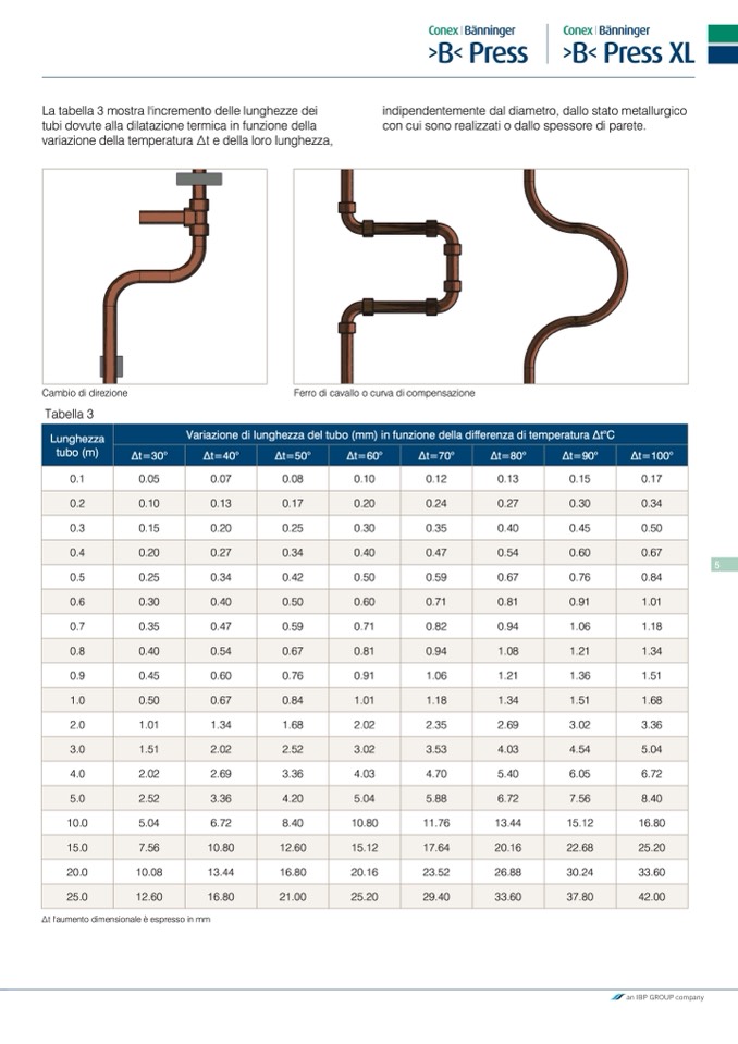 tubi dovute alla dilatazione termica in funzione della