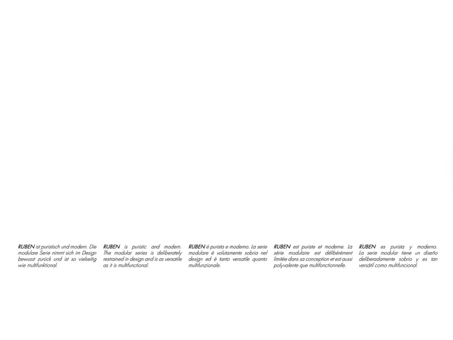 RUBEN ist puristisch und modern. Die RUBEN is puristic and modern. RUBEN è purista e moderno. La serie RUBEN est puriste et moderne. La RUBEN es purista y moderno.