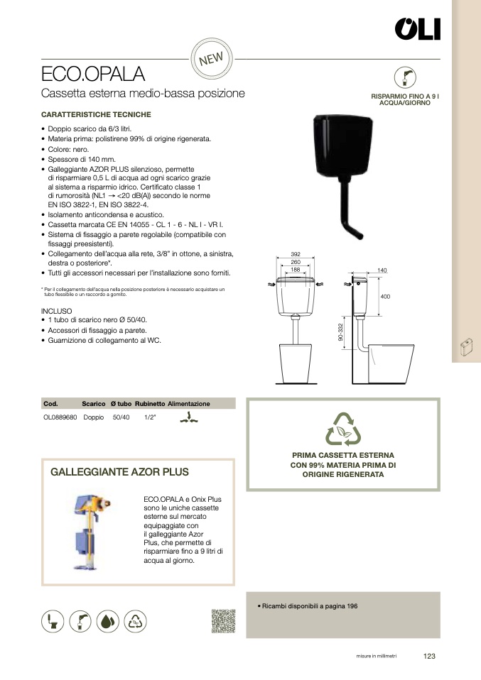 • Cassetta marcata CE EN 14055 - CL 1 - 6 - NL I - VR I