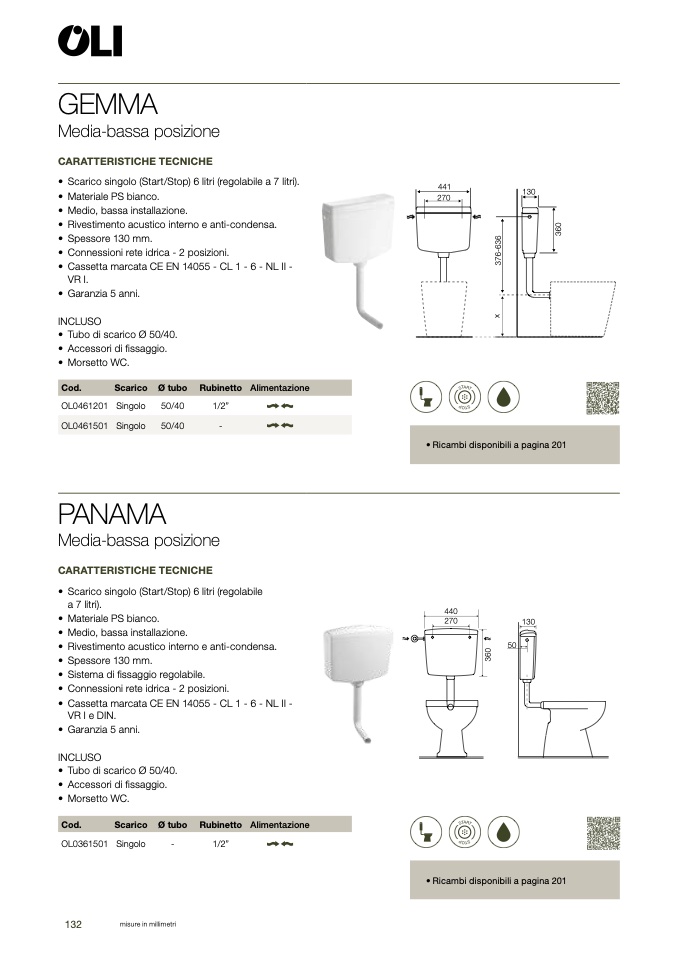 • Scarico singolo (Start/Stop) 6 litri (regolabile a 7 litri)