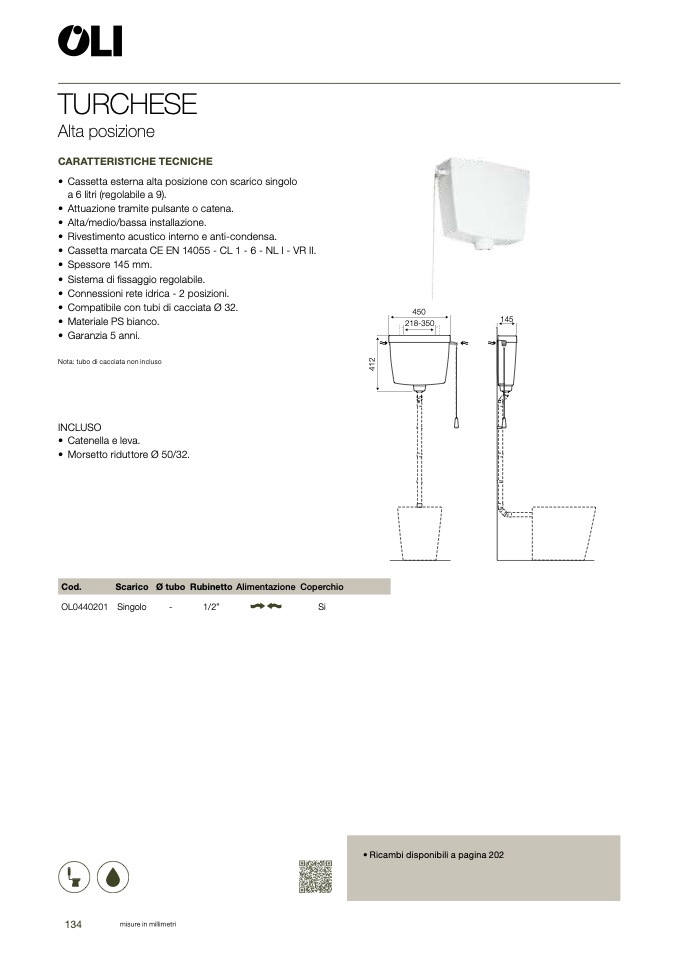 Scarico Ø tubo Rubinetto Alimentazione Coperchio