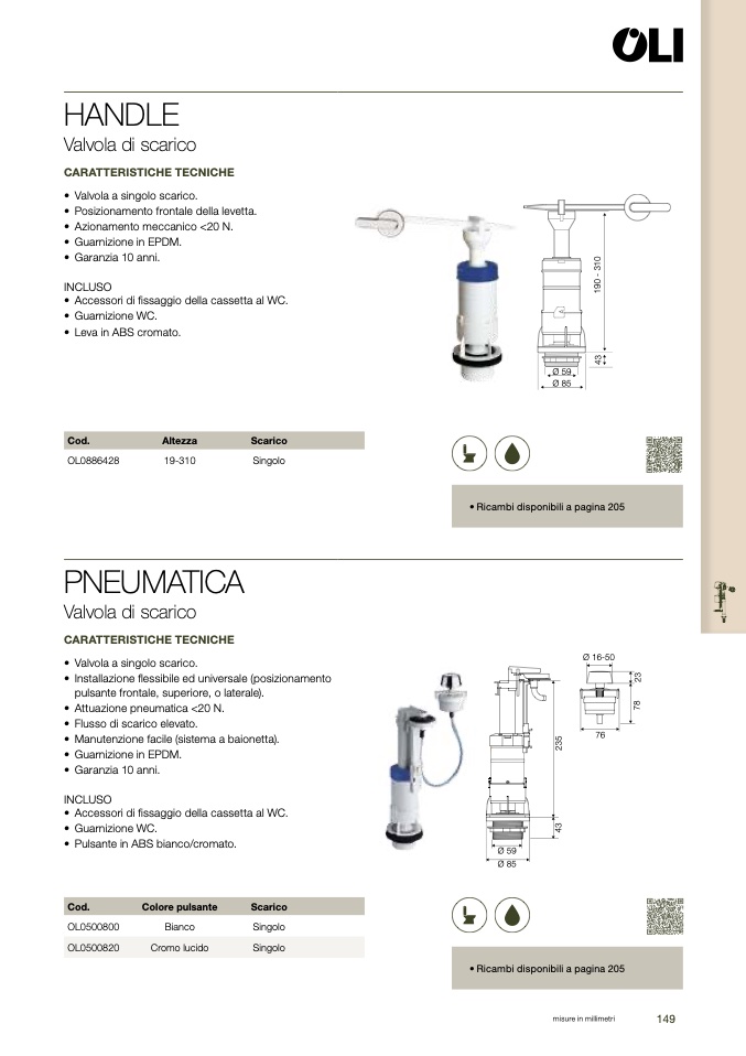 • Valvola a singolo scarico.