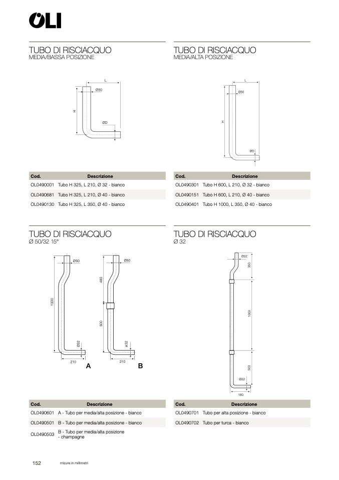 B - Tubo per media/alta posizione - bianco