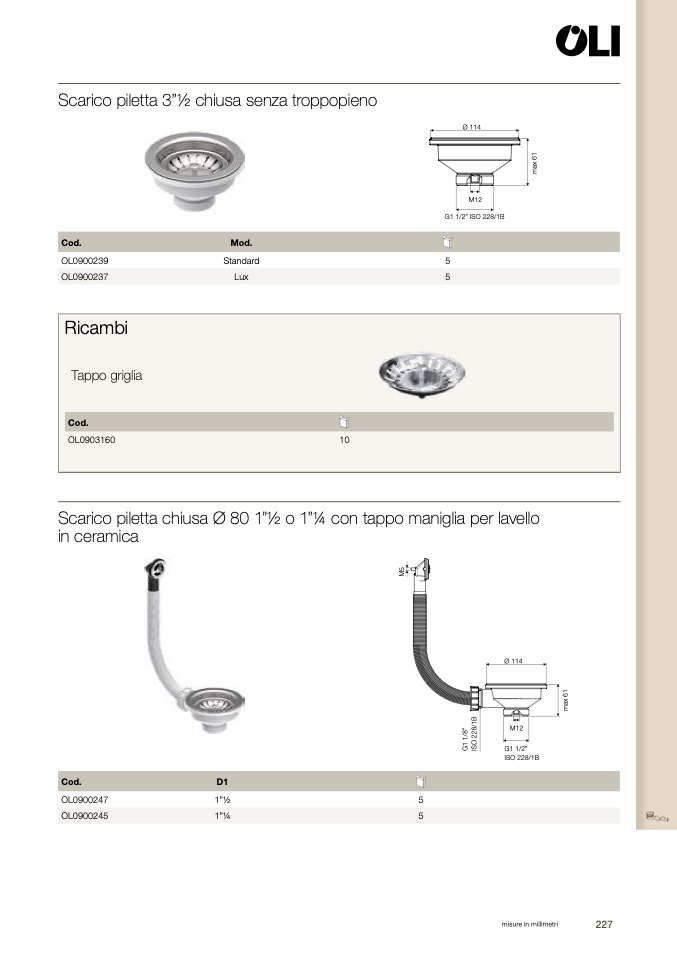 Scarico piletta 3”½ chiusa senza troppopien