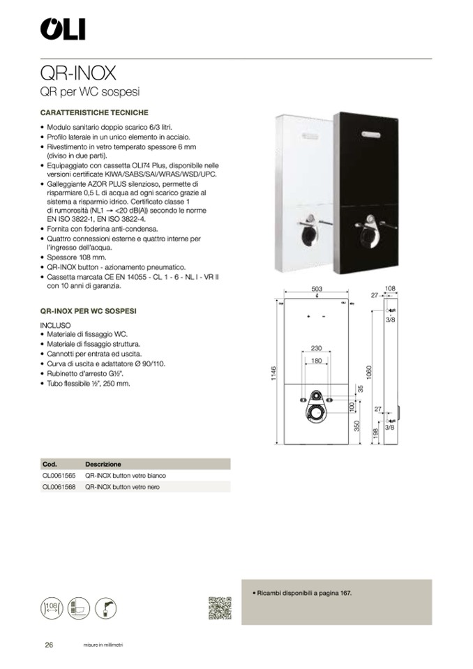 • Cassetta marcata CE EN 14055 - CL 1 - 6 - NL I - VR I