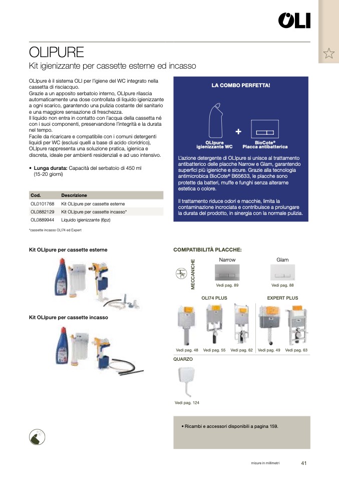 Kit OLIpure per cassette incasso*