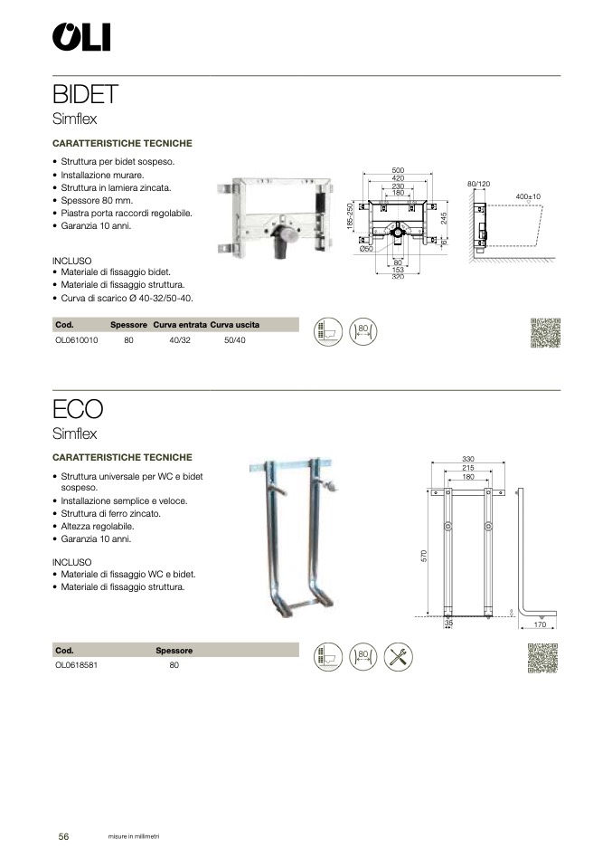 • Struttura per bidet sospeso
