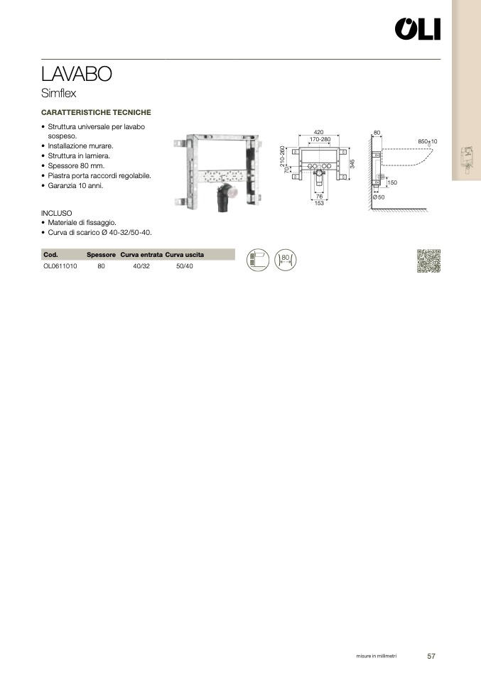 • Struttura universale per lavab